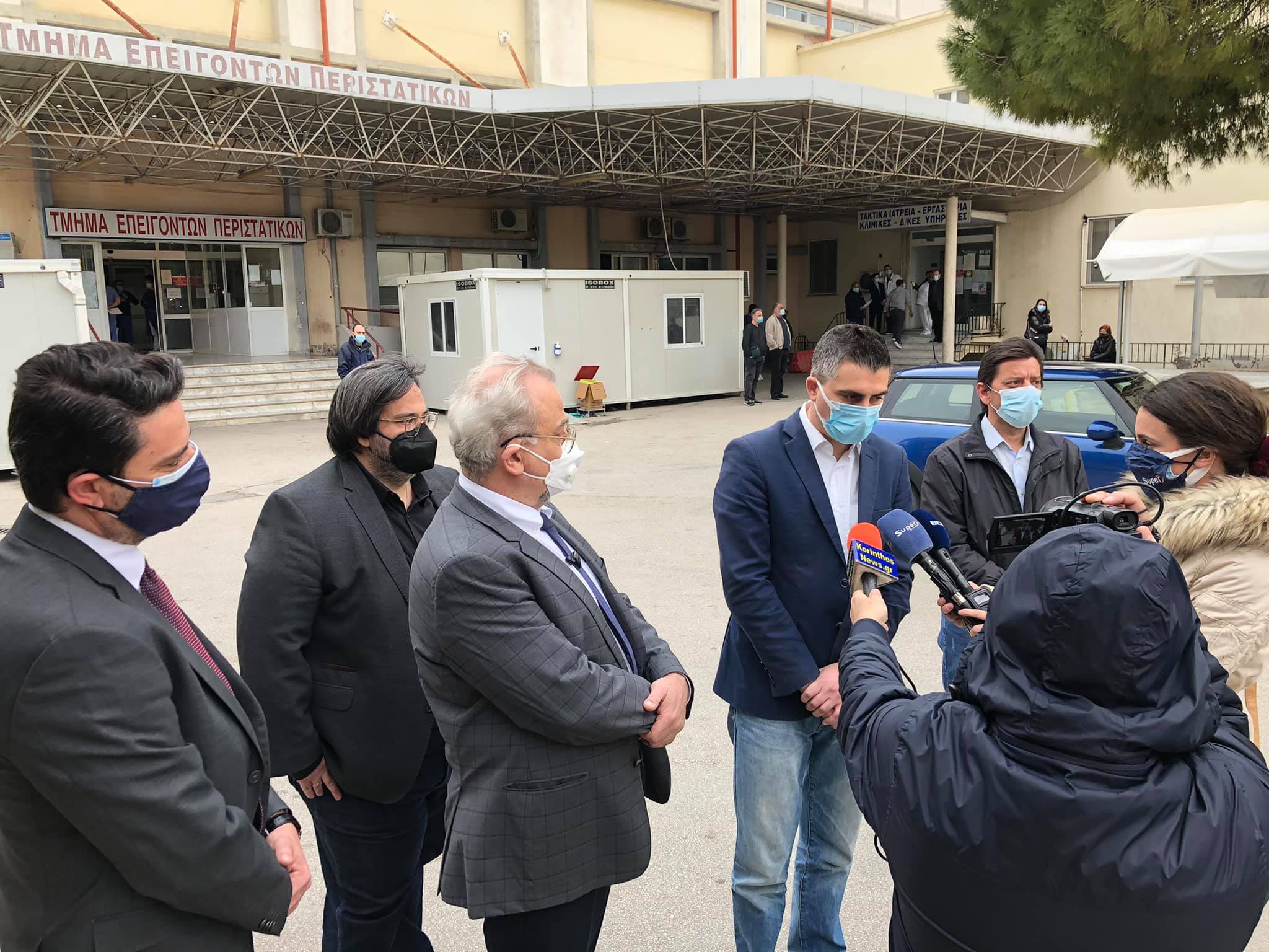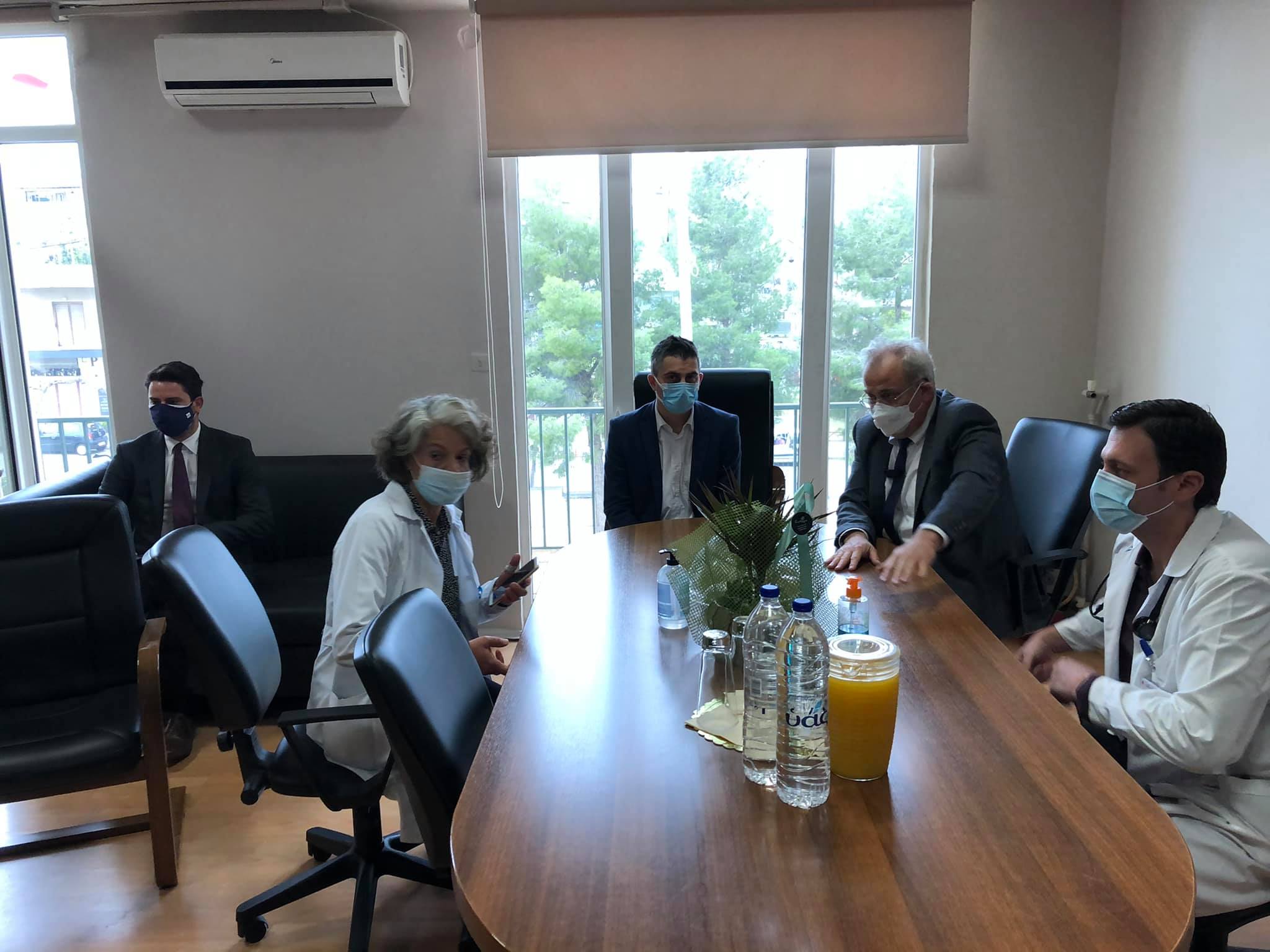 Η διοίκηση του Νοσοκομείου διαβεβαίωσε πως η διαδικασία του εμβολιασμού προχωρά με εντατικούς ρυθμούς και σε άριστες υγειονομικές συνθήκες. Παράλληλα, ο κ. Δήμας είχε την ευκαιρία να συζητήσει με το Σωματείο Εργαζομένων του Νοσοκομείου.